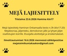 Ilmoittautumiset 16.6.2026 mennessä mejatoimikuntakaakon@gmail.com Paikkoja rajattu määrä